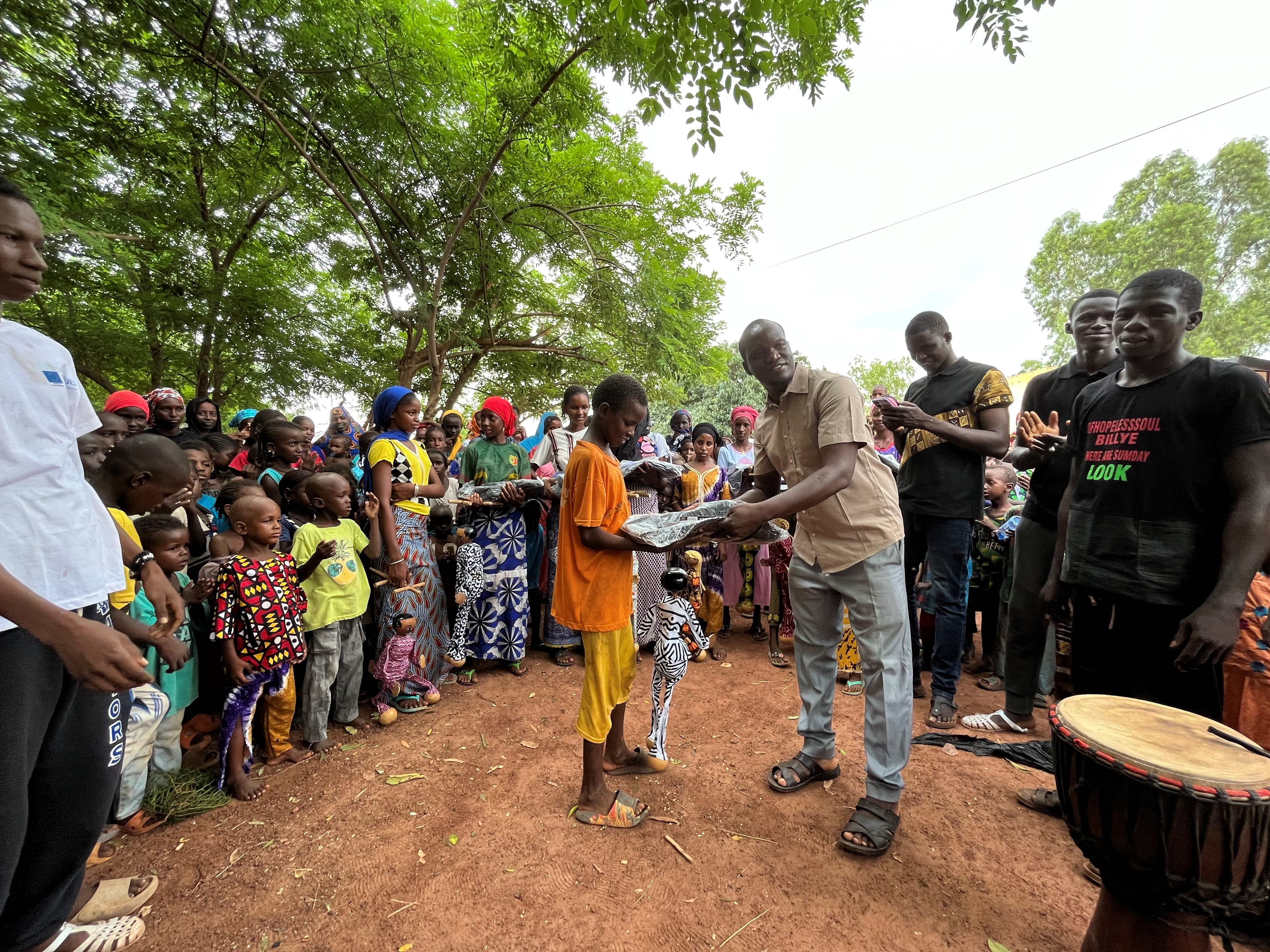 Lors de son passage, la délégation de l’Ambassade du Luxembourg a pu assister à la restitution du projet et visiter le camp. L’évènement a mobilisé un grand nombre d’enfants, heureux de pouvoir prendre part au spectacle de marionnettes. Des prix (sac à dos, cahiers, etc.) ont été remis aux jeunes qui ont suivi les ateliers avec assiduité et réalisé le spectacle devant le public afin de les encourager et de leur permettre de poursuivre leur scolarité avec du matériel adapté.